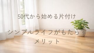 片付けと整えるくらし 50代から始める片付け|シンプルライフがもたらす8つのメリット 50代から片付けを始めるメリットを解説。時間・お金の節約、健康面の改善、老後の安心感まで、シンプルライフがもたらす効果をわかりやすく紹介します。 2026.03.11 片付けと整えるくらし